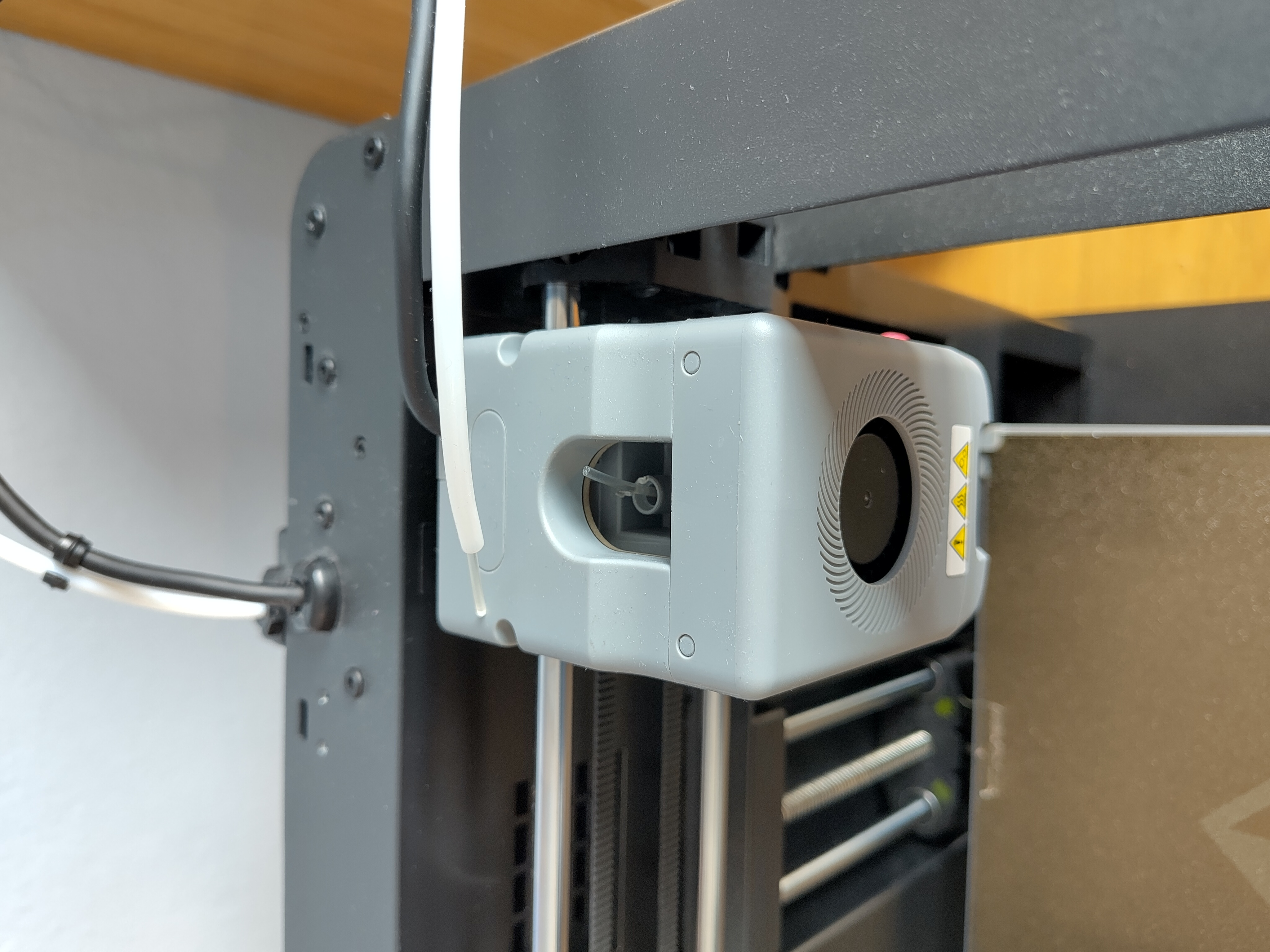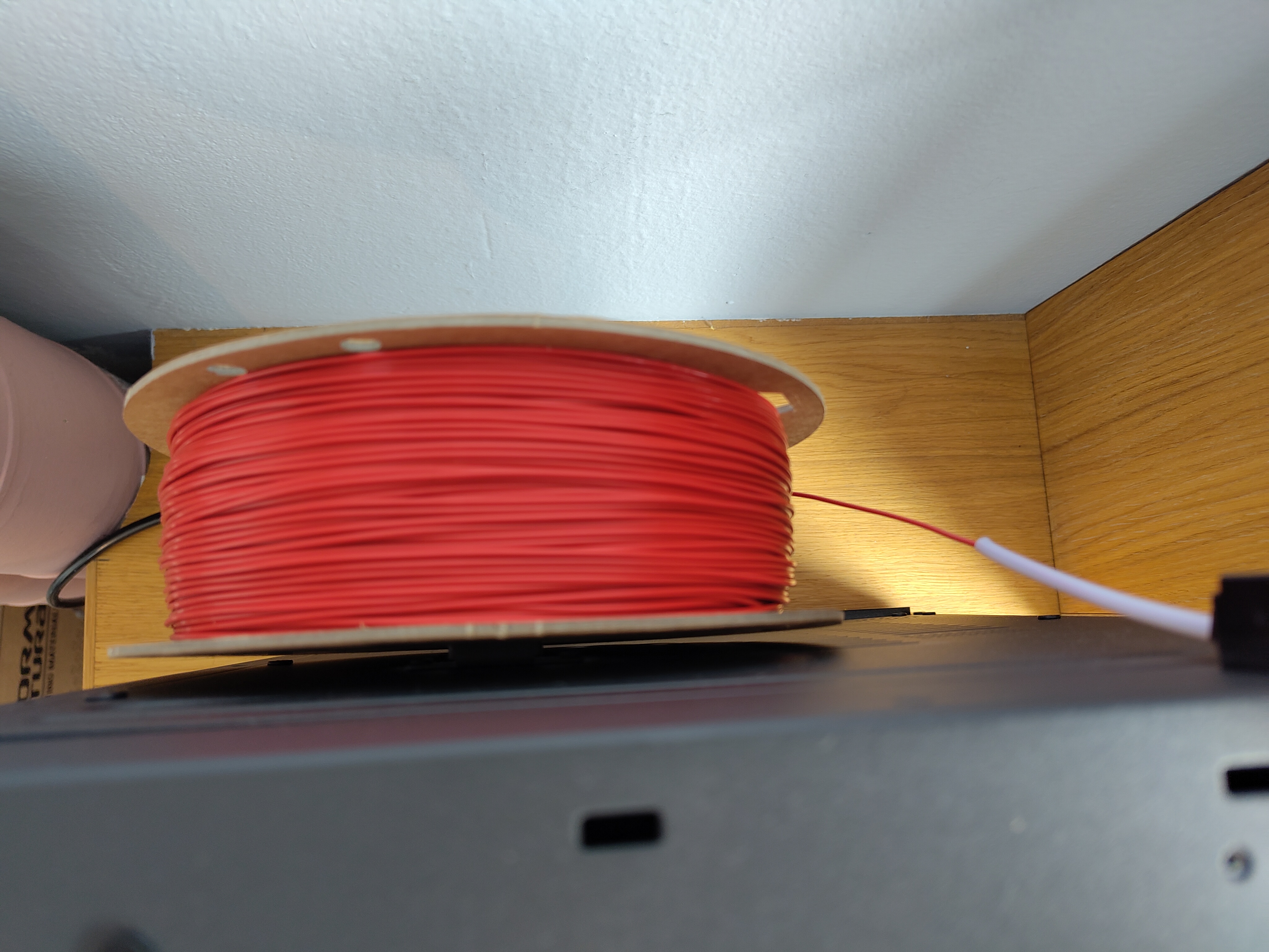 Zorg ervoor dat deze op dezelfde manier kan afrollen als je eerdere rol. Of als je deze voor het eerst plaatst, zorg ervoor dat het filament gemakkelijk de bowden-tube in kan. Mocht je filament punt scheef zijn, of geknakt, knip dit af, het kan namelijk wat stroever door de bowden-tube heen lopen.